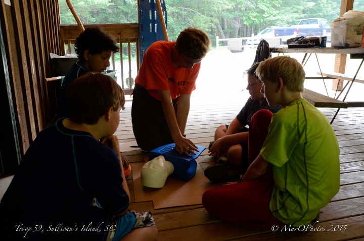 Several requirements for each merit badge must be completed before or after attending camp. Visit the Pre-Requisites list above for more information. Scouts may bring the materials necessary for Emergency Preparedness requirement 8b to camp to be checked off by the instructor, or may complete 8b at home.